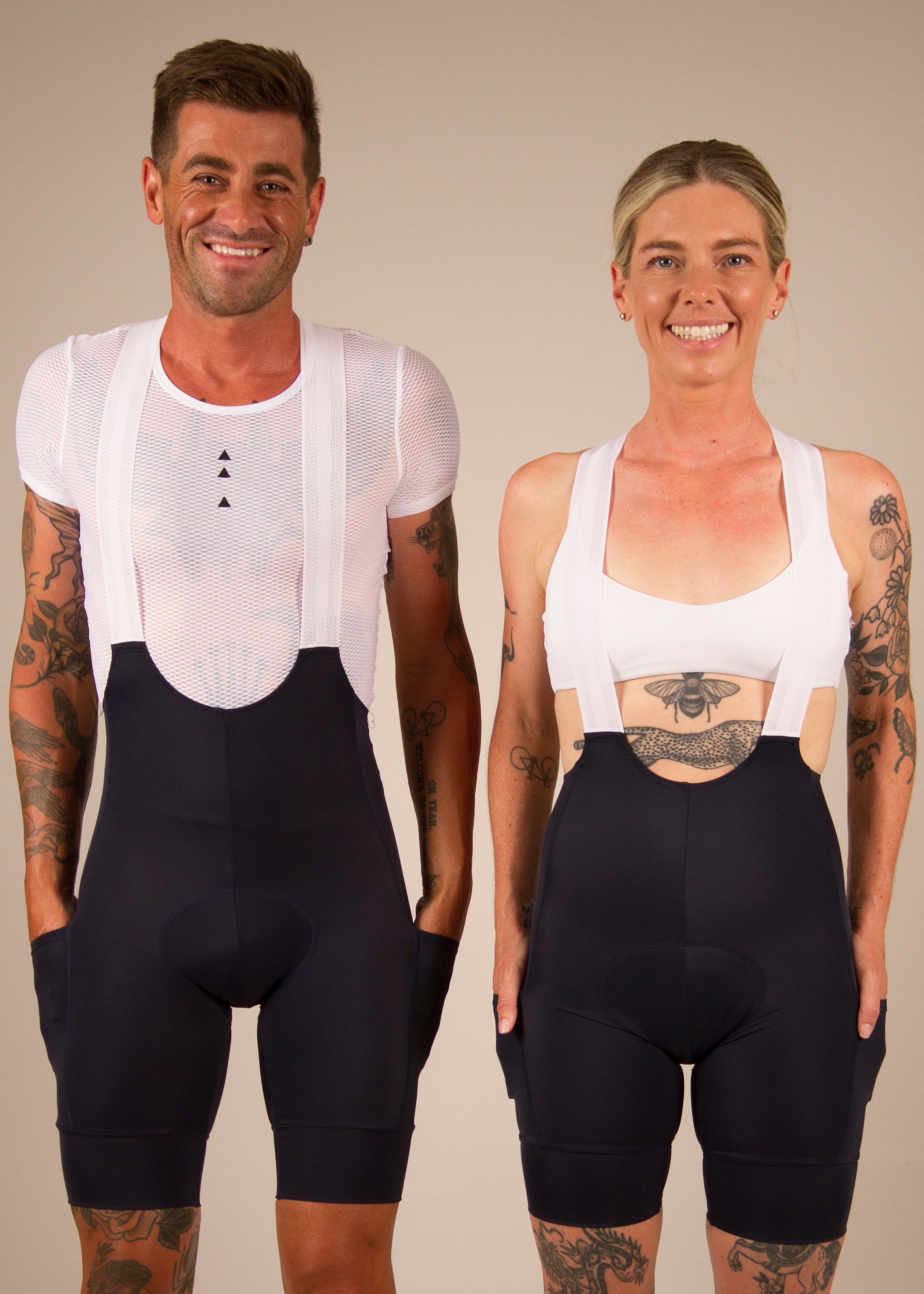 Our kits are race cut and made to feel good. The jerseys are a tight race cut and the bibs are compression. Both are designed to be skin tight to move with your body correctly. The bibs need to be wriggled up your thighs and body into the correct position and height you prefer. The chamois must be pulled up sitting flush with your skin.