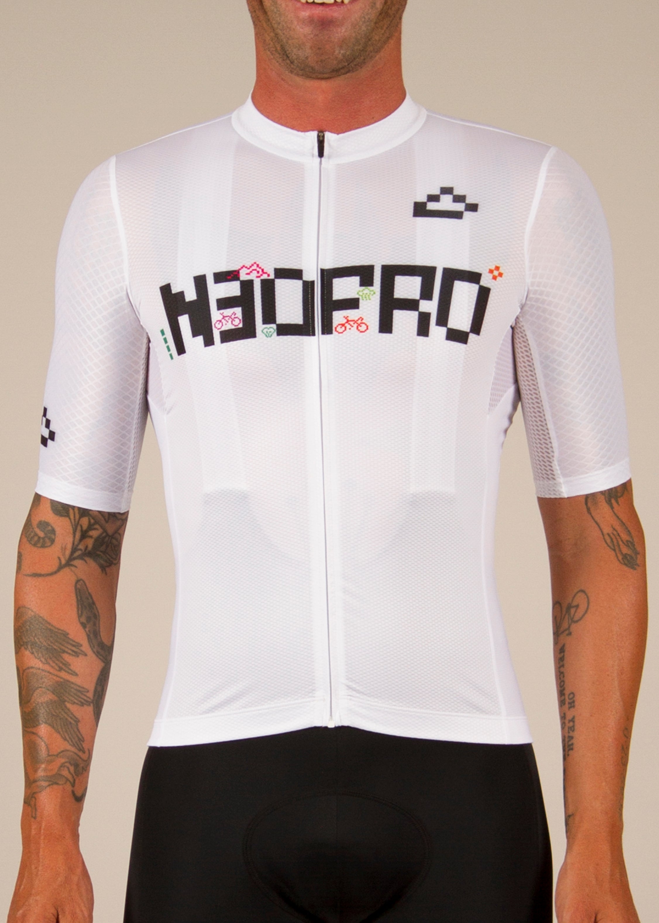 This Jersey is white with a video game print.