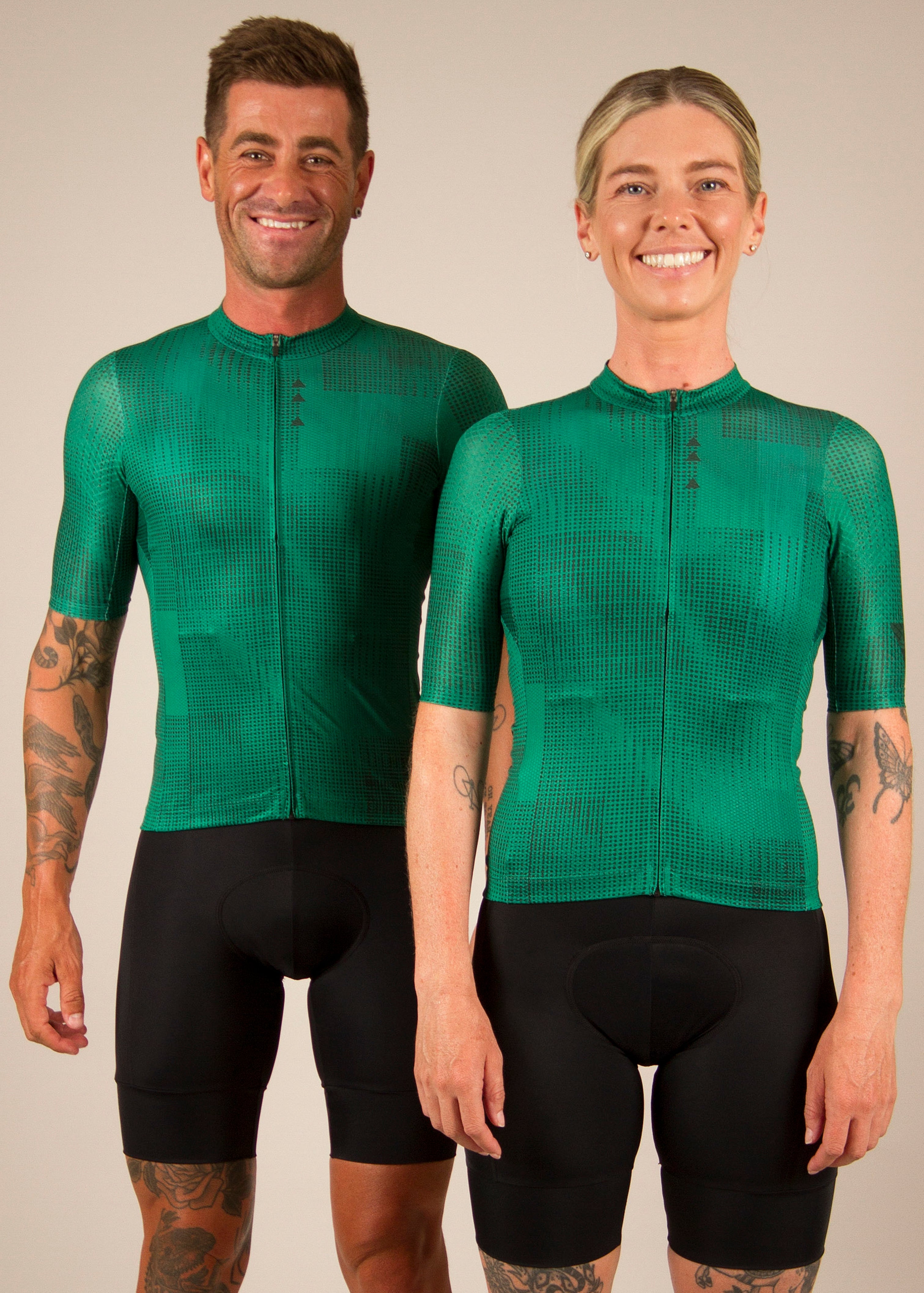 Our kits are race cut and made to feel good. The jerseys are a tight race cut and the bibs are compression. Both are designed to be skin tight to move with your body correctly. The bibs need to be wriggled up your thighs and body into the correct position and height you prefer. The chamois must be pulled up sitting flush with your skin.