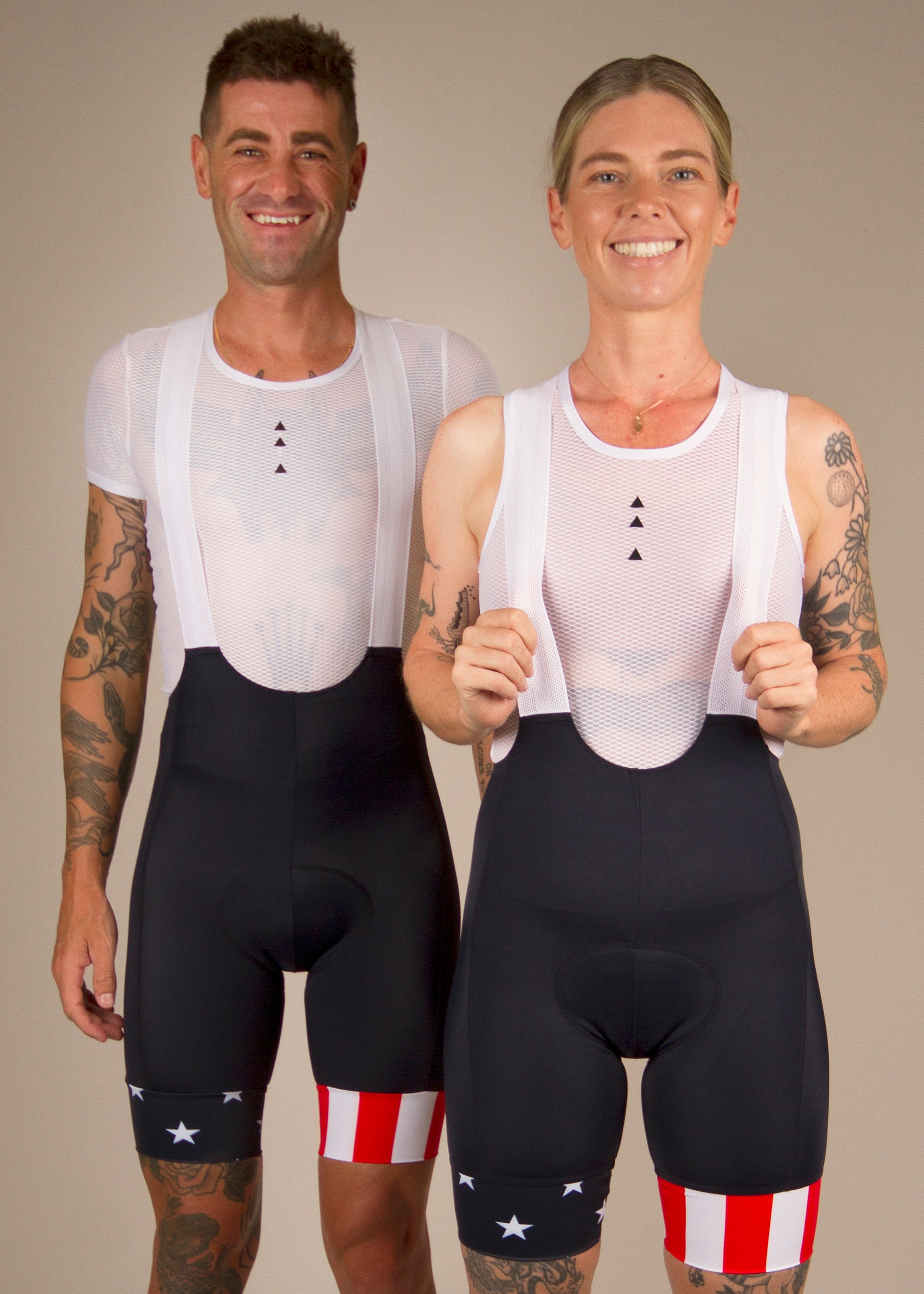 Our kits are race cut and made to feel good. The jerseys are a tight race cut and the bibs are compression. Both are designed to be skin tight to move with your body correctly. The bibs need to be wriggled up your thighs and body into the correct position and height you prefer. The chamois must be pulled up sitting flush with your skin.
